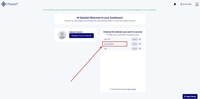 To access your domain and begin your traceability journey, click on the name of the domain on the list of domains.