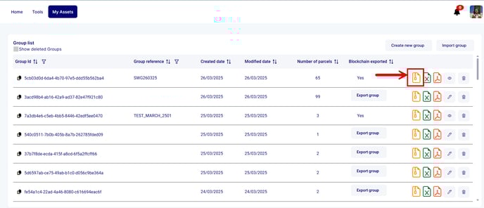 Click on the ZIP file icon next to the group to download all individual traceability reports in one ZIP file.