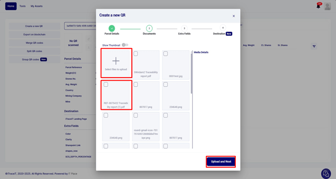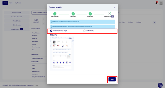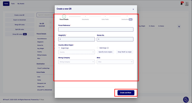In iTraceiT, every parcel is represented by a unique QR code that acts as its digital identity on the blockchain. Creating a QR code means generating a secure, traceable record that is linked to the physical parcel : its weight, reference, certificates, and all related data.
