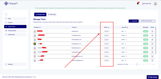The Team and Access section in iTraceiT allows administrators to manage who can access a domain and what each user is allowed to do. From inviting new users to assigning roles and monitoring access status, this area is essential for maintaining control, security, and operational efficiency within your organization.