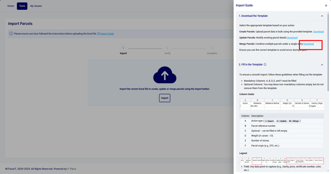 Merging QR codes in iTraceiT streamlines parcel management by allowing multiple sources to be tracked within a single, consolidated parcel. This process ensures complete traceability and transparency, as every contribution is accurately represented. As a result, users benefit from efficient workflows and clear visibility into parcel origins and compositions.
