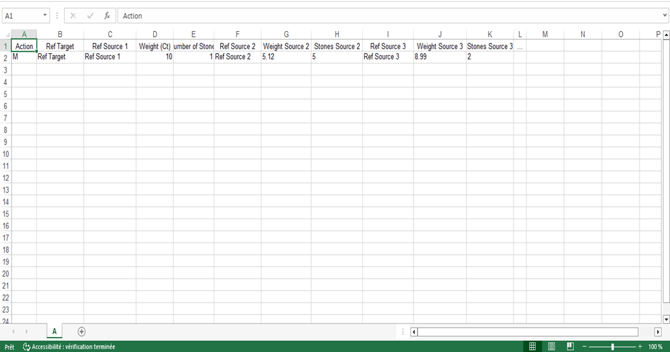 - Column G – Weight Source 2: enter the weight taken from source 2 (in carats)