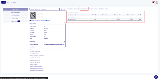 The QR codes will be merged, and you will see the traceability to the original QR code as well as the percentages proportions