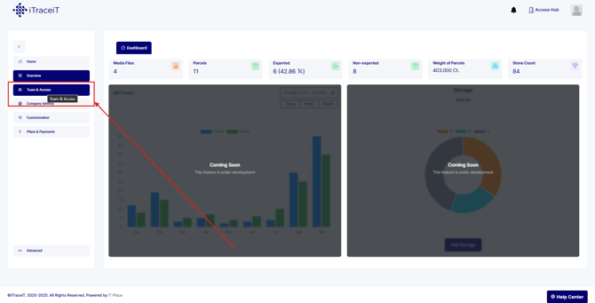 Step 2: In the left menu, select Team and Access. This page shows all users currently associated with your domain.