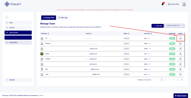 There may be situations where a user should no longer have access to your iTraceiT domain. This can happen when someone leaves the organization, changes roles or no longer needs operational access.