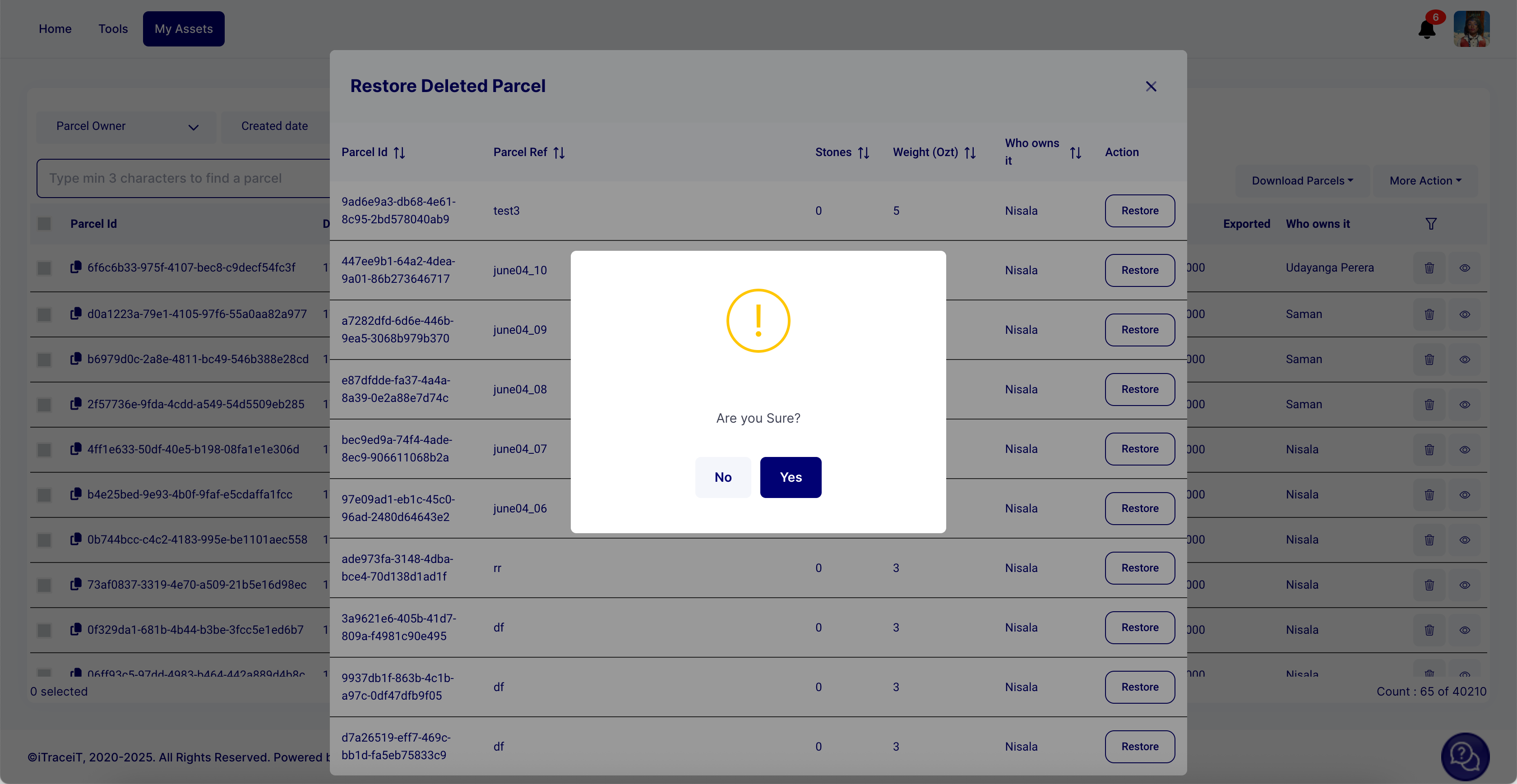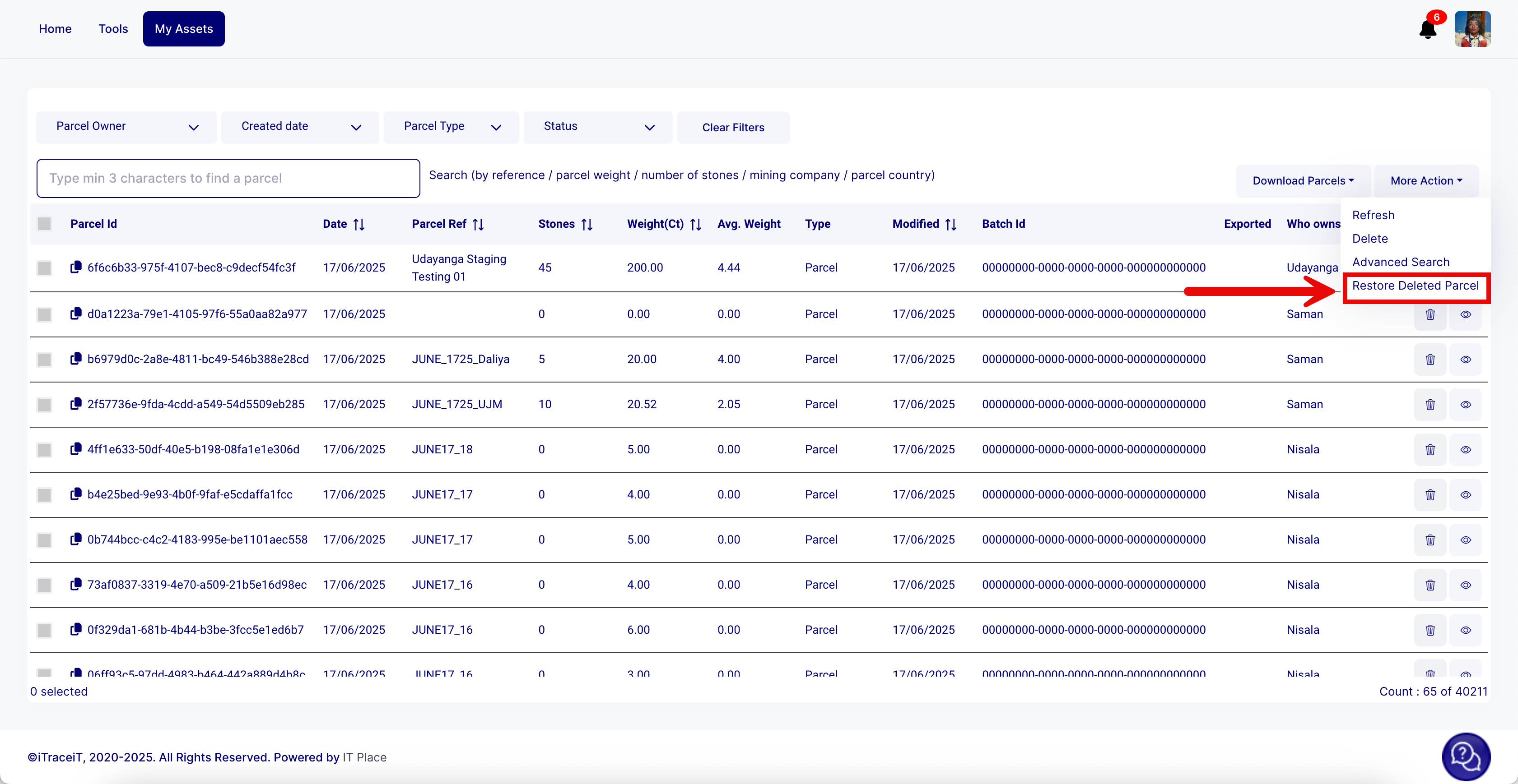 - Step 4: From the dropdown, select the option Restore Deleted Parcel. This action opens a new window containing a list of all QR codes that were previously deleted.