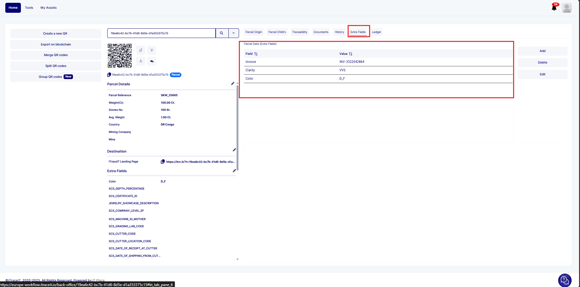You received parcels with QR codes Instructions : 1 Access the iTraceiT web service either by visiting https://europe-workflow.itraceit.io or by clicking the "Workflow" button directly on the iTraceiT website 2 Enter your credentials to log in |