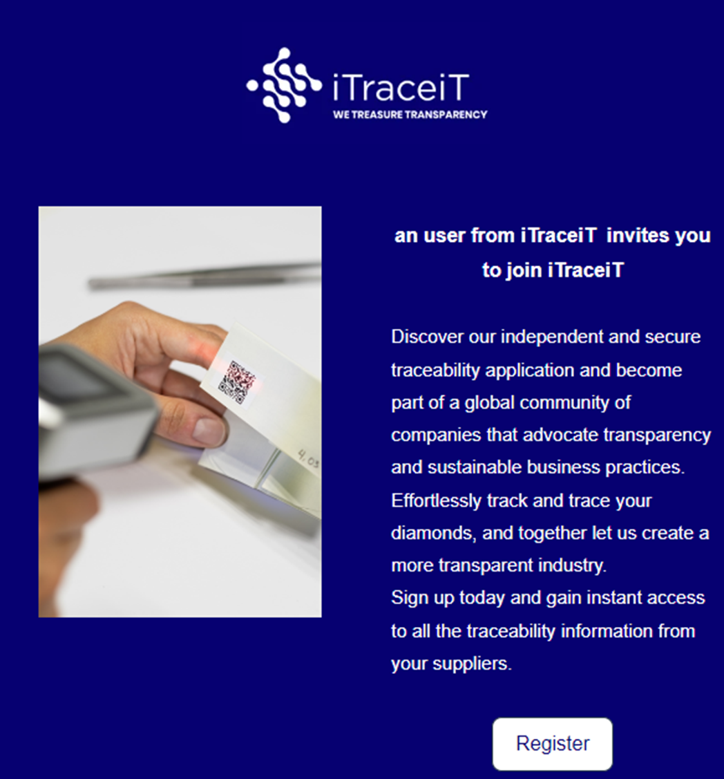 Registration to iTraceiT You have been invited via email to join iTraceiT :