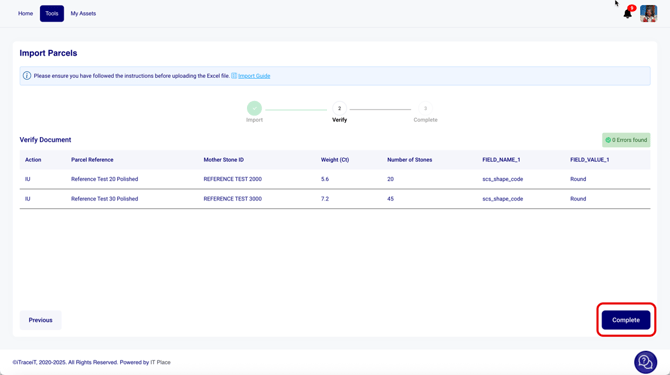 - Step 9: The system will automatically check your file for errors. If there are no errors, click Complete. The system will generate and register the new child parcels with their own QR codes.
