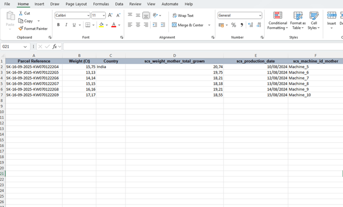 Each line in the Excel file represents one parcel. A unique QR Code will be generated for every line you complete.