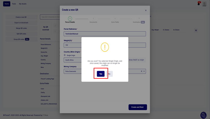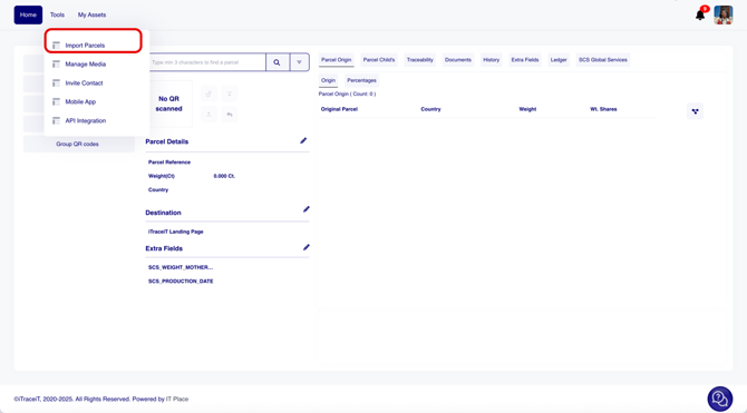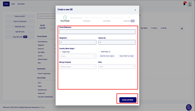 In iTraceiT, the system offers two ways to create a QR Code. You can create QR Codes manually one by one. You can also create them in bulk by importing an Excel file with several parcels at once. Both options ensure full traceability on the blockchain and prepare your parcels for SCS validation and certification.
