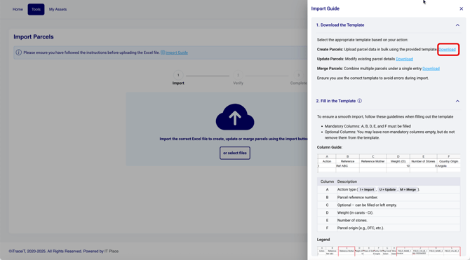 - Step 7: Return to the iTraceiT interface. In the Import Parcels screen, drag-and-drop the file or click Select Files to upload it