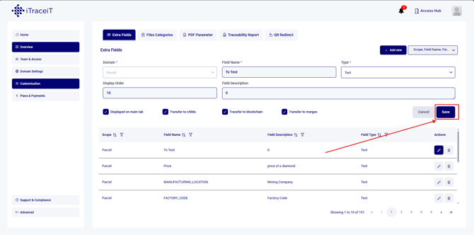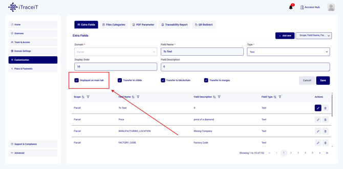 - Displayed on main tab: When this option is enabled, iTraceiT displays the field directly on the homepage, in addition of keeping it in the Extra Fields list.